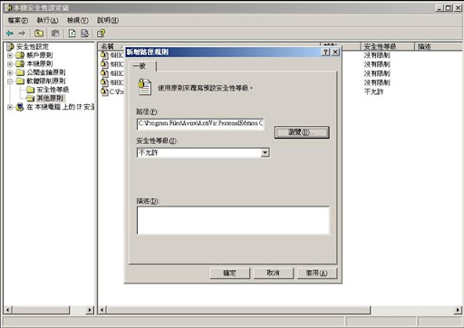 Run -> secpol.msc ->軟體限制原則(右鍵)->所有工作->建立新原則->新增路徑規則->把avnotify.dll和avnotify.exe加入, 安全等級選為"不允許" , 確定後 重開機